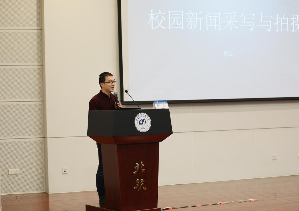 培训班上,校党委宣传部常务副部长、新闻中心主任谭华霖作了《共同奏响北航好声音》的主题报告,他从北航宣传思想工作概况、新媒体时代下的新闻宣传、新闻通讯员的使命与职责三方面介绍和分析了一流大学要有一流的宣传,以及在当前时代应如何创新性的开展新闻宣传工作。
