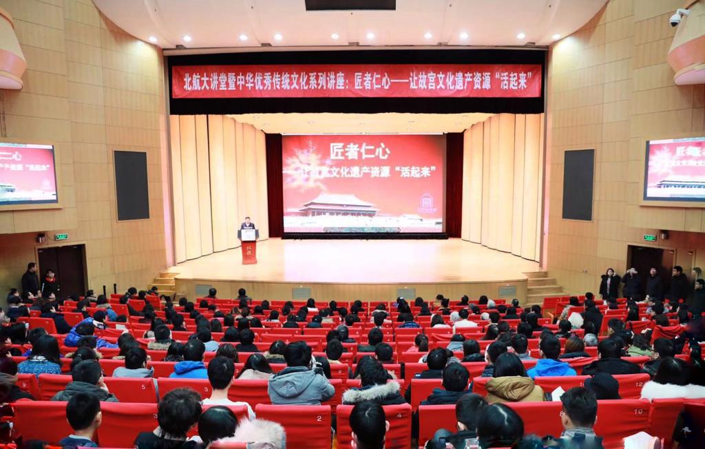 北航新闻网12月29日电(通讯员 王扬 刘威/文 记者 邸白鹭 宋超/摄影) 12月29日上午,北航大讲堂暨中华优秀传统文化系列讲座邀请到文化和旅游部党组成员、故宫博物院院长单霁翔作《匠者仁心-让故宫文化遗产“活起来”》主题报告。校党委副书记程基伟主持讲座,学校师生、校友共800余人在北航晨兴音乐厅主会场聆听了报告。本次活动由党委宣传部、学生工作部和研究生工作部主办,由外国语学院承办。