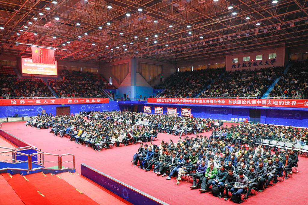 北航新闻网2月25日电(通讯员 王博/文 张之蔚/摄影)2月23日和24日,北京伊人992019年学生党员集中学习报告会在北航体育馆举行,共约7000名学生党员参加为期两天的集中学习。报告会邀请到中共中央党校教授辛鸣、中国人民大学教授王向明为学生党员先后作《中国共产党治国理政大逻辑》《中国特色社会主义理论和实践》主题报告。