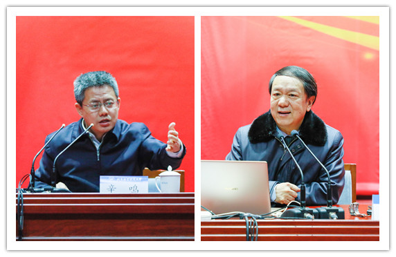 | 辛鸣教授(左)、王向明教授(右)为学生党员做主题报告 |