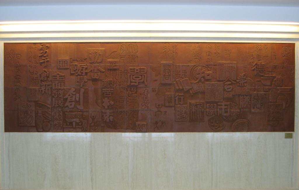 2007年9月落成于学术交流厅大厅。浓郁的中华文化特色、北航半个多世纪的办学传统与育人理念以立体壁画的方式,在暖色调的画面中相互交融,形成了强烈的视觉冲击和艺术美感。该作品长4.6米,高1.4米,采用传统的浮雕创作和陶板烧制技术制作而成。整幅作品凝重、大气,立体感、透视性强,将我校的校训“德才兼备、知行合一”、校风“艰苦朴素、勤奋好学、全面发展、勇于创新”和大量中华传统文化符号高度融合,烧制于画面之中,具有丰富的校园文化内涵和象征意义。