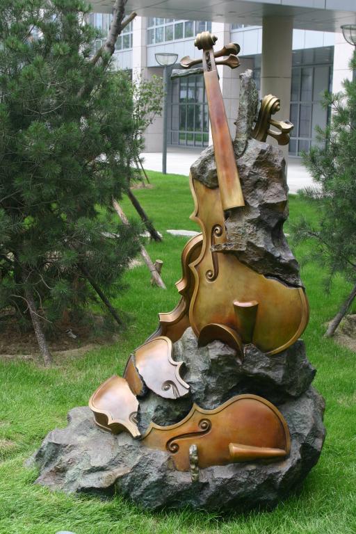 2007年10月落成于新主楼花园西北侧。雕塑主体高2.6米,青铜铸造。该作品主体造型为两把高高竖起的小提琴和两把横卧的小提琴局部,顽强地生长、依存和融合于土地与岩石之中。经过了时光和风雨历练,已成化石的乐器互相依靠着矗立,青铜铸就的厚重的红褐色与绿树成荫的翠色相互掩映,极富人文气息地透射出音符的幻想,给整个环境增添了些许内在激情与庄严、肃穆、高雅和纯粹的品格。作品命名为《协奏曲》,一方面是对我们所处的时代寄寓了无限理想与期待,另一方面协奏曲(concerto)一词源自拉丁文collcertaye,原意是在一起比赛,是两种因素既竞争又协作之意。透过对历史的追问与抚摩(铜虽是冰冷的金属,但它在公共环境中却转换为艺术的亲和物,其色泽将在观者的抚摩下更为丰富、饱和),该作品同时也表达了个人的不屈奋斗与心灵成长,将当代雕塑的原创性、试验性和公共性较好地融为一体。